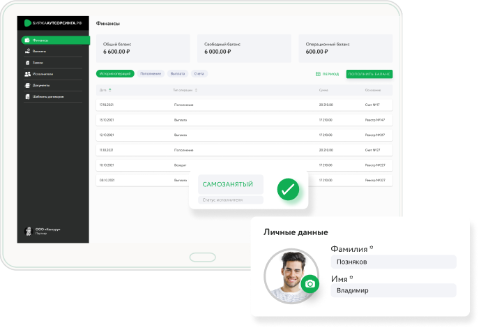При регистрации самозанятые указывают свой ИНН. Мы проверяем человека по базе ФНС, следим, чтобы он имел статус самозанятого. Если он его потеряет, не сможет откликаться на заявки.